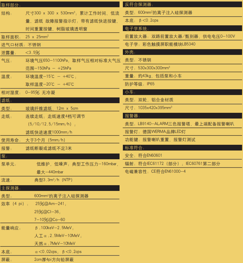 德國伯托 移動(dòng)式αβ氣溶膠連續(xù)監(jiān)測儀LB9140 技術(shù)參數(shù):