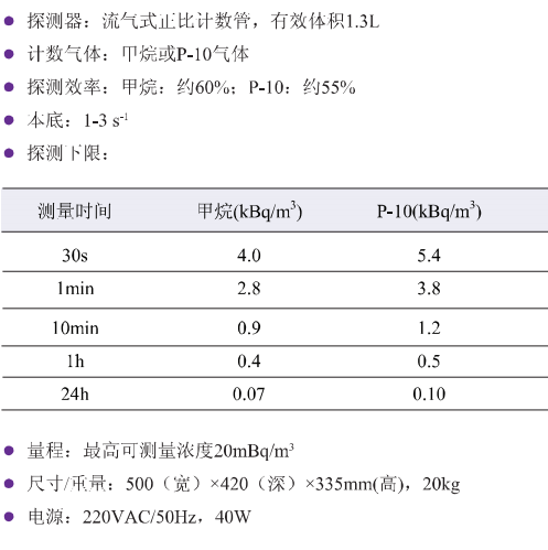 LB110是專門用于測量室內空氣和廢氣中氚的放射性濃度,靈敏度非常高。在第二個通道中能單獨的探測出其它氣體放射性核素或提高的本底放射性水平。因此,其它核素對氚測量的影響非常小