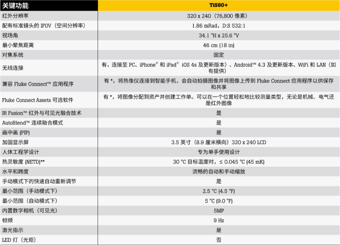 美國FLUKE TiS60+ 熱像儀 相關參數: