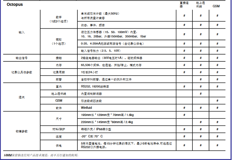 Octopus遠程記錄儀有多種遠程傳輸選項,如GSM,PSTN標準電話線,還有一個開關量來控制其他設備以拓展到其他應用,如采樣器。