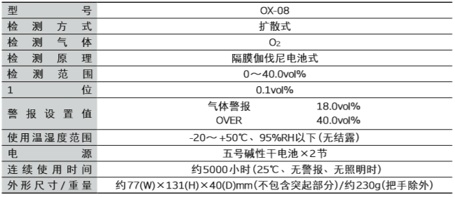 日本RIKEN(理研) OX-08便攜式氧氣檢測儀產(chǎn)品技術(shù)參數(shù):