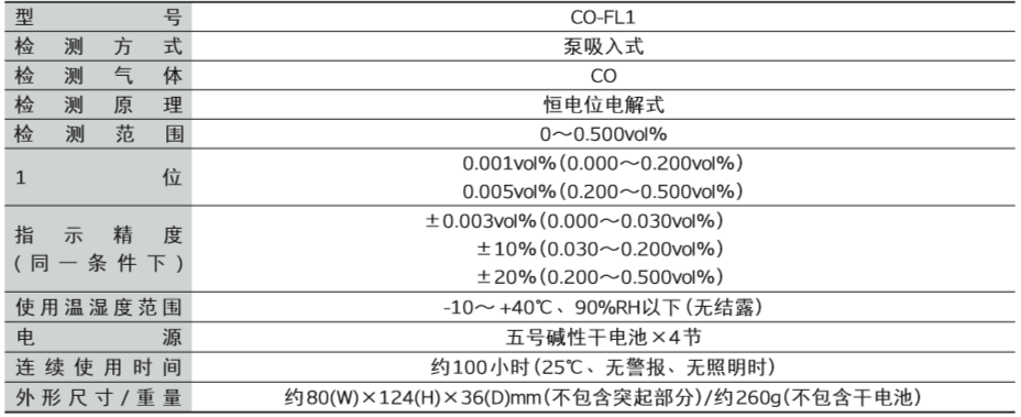 日本RIKEN(理研) CO-FL1一氧化碳檢測儀產(chǎn)品技術(shù)參數(shù):