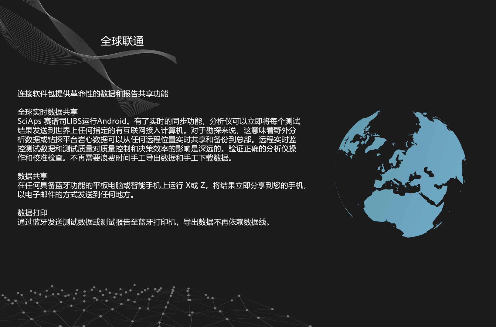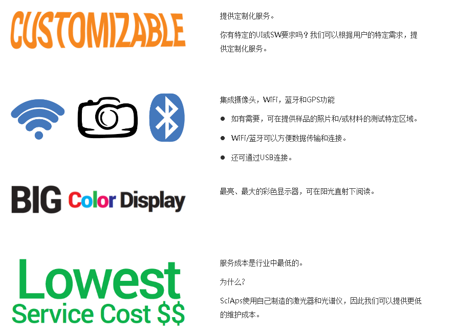 | 通訊-數據傳輸 | Wifi,藍牙,USB。能連接到大多數設備,包括SciAps ProfileBuilder PC軟件。 |
