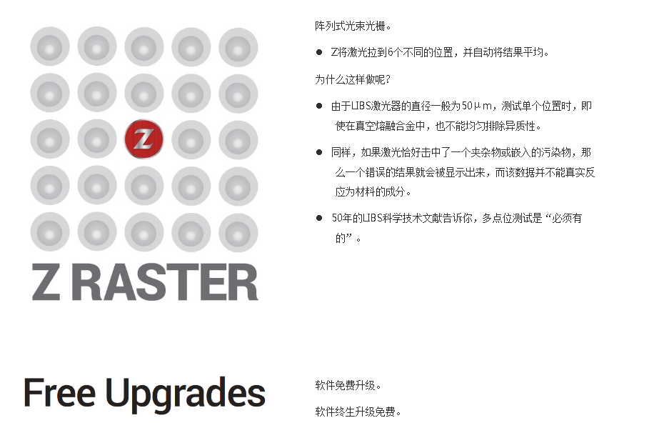 精密的化學元素分析。LBS(激光誘導擊穿光譜技術)是一種光學分析技術,與火花直讀光譜儀器(OES)樣。LIBS使用激光獲得等離子體光譜。而OES用電火花產生所需光譜。LIBS