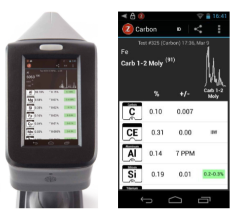 手持式激光合金分析儀 SCIAPS BSZ-200C+,能可靠地分析碳鋼中的碳元素。碳元素的譜線分辨率<0.13nm,能可靠的分析碳素鋼、鑄鐵、低合金鋼、Cr-Mo鋼、不銹鋼等金屬中的碳元素。