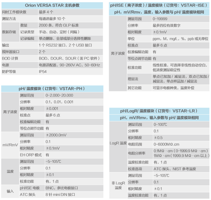 ?美國Orion奧立龍 VERSA STAR 臺式多參數測量儀產品技術參數:?