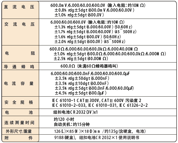 日本共立 KEW 1019R卡式萬用表 相關參數: