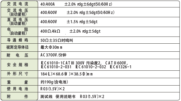 日本共立 MODEL 200 數字式鉗形表 相關參數: